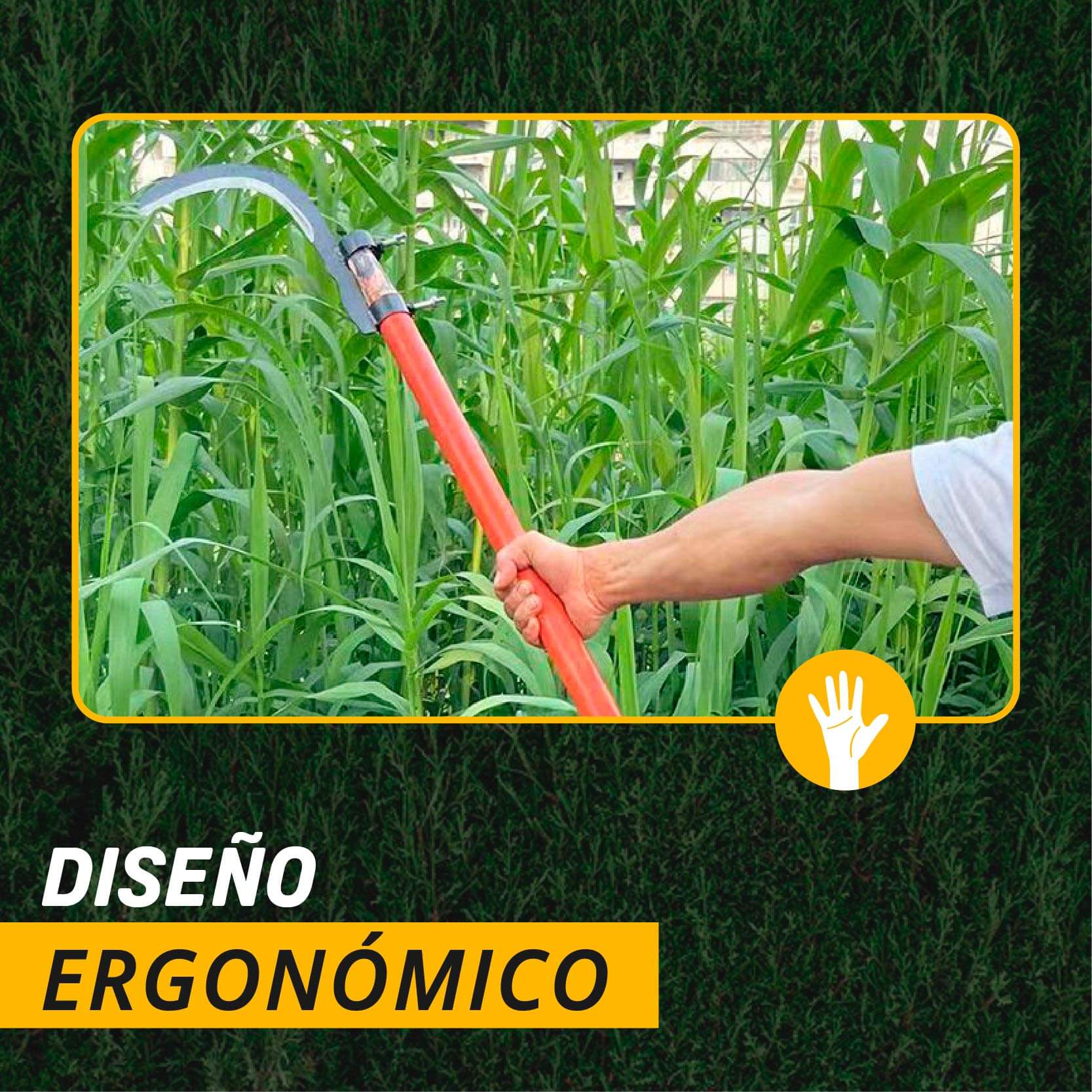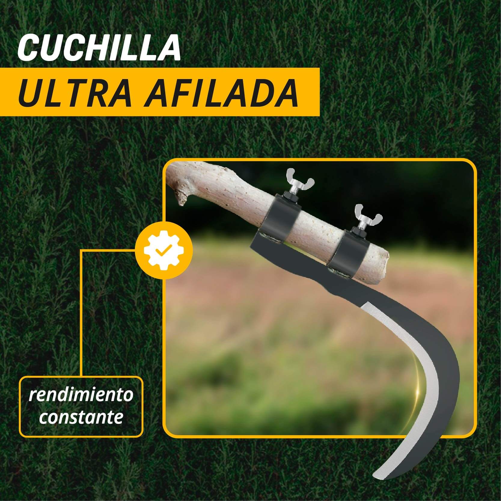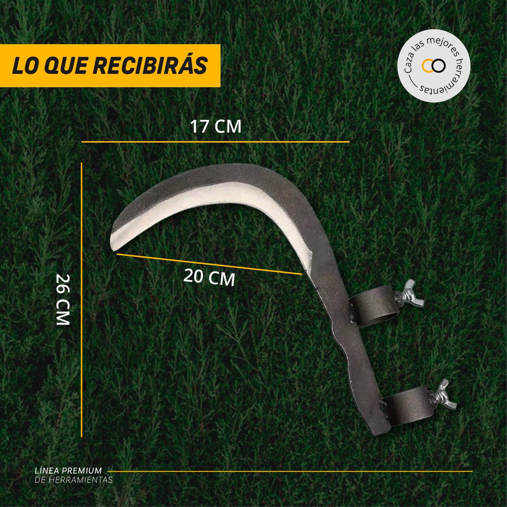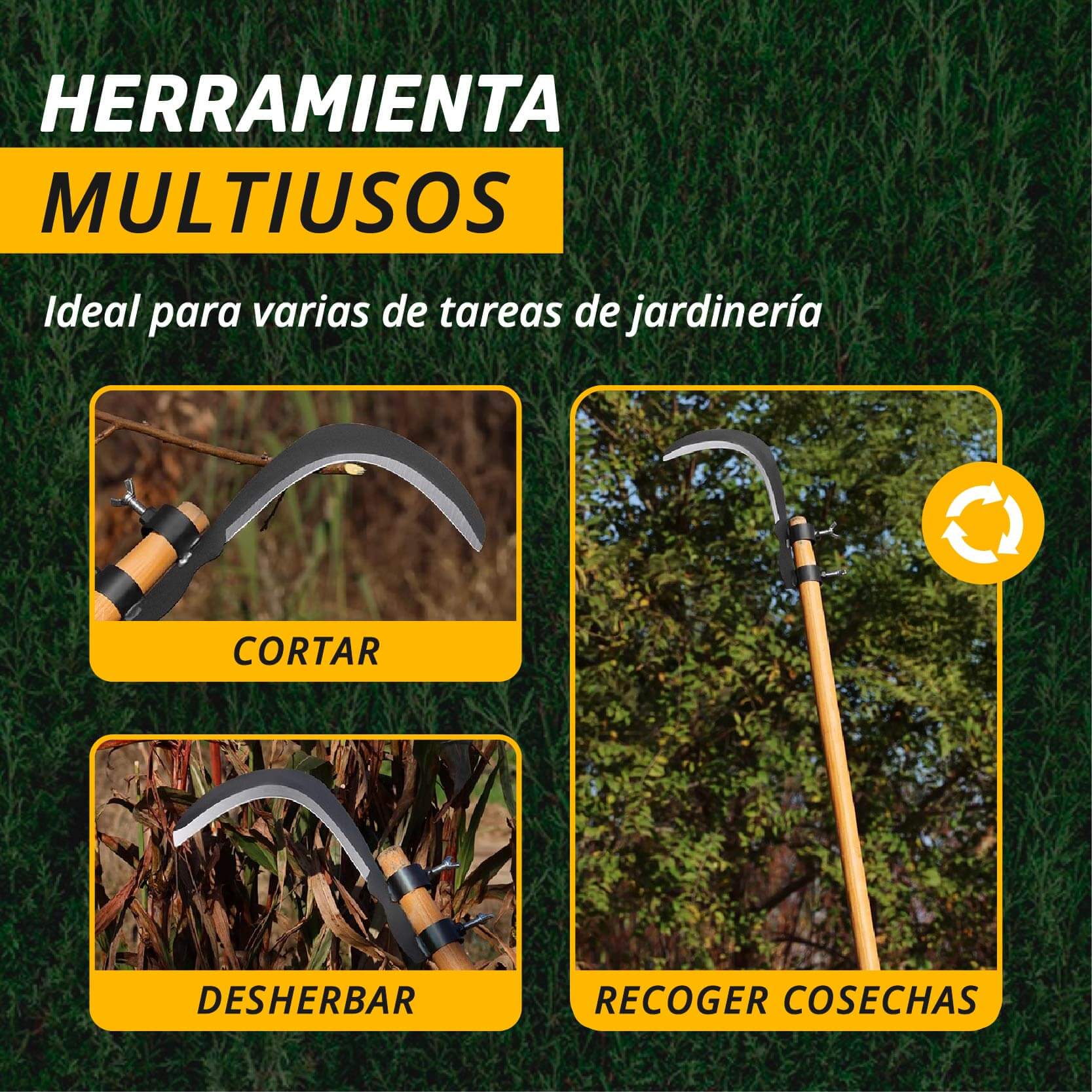 Desde el deshierbe rápido hasta el corte de ramas en altura, es ideal para una amplia variedad de tareas de jardinería y campo. Su diseño curvo y afilado permite cortar, despejar y cosechar con eficiencia, adaptándose a las necesidades del terreno y del usuario.